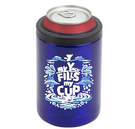 Exclusive tumbler for YMCA employees who give at least $25 to the Annual Campaign. Royal Blue - 12 oz Vacuum Insulated Stainless Steel Tumbler + Can Cooler that features double-wall vacuum insulated stainless steel construction and 2 lids: clear plastic push-on lid with sliding drink opening and insulator ring for cans/bottles. To use insulator ring, place ring on can first, then screw into tumbler. Keeps drinks hot or cold for up to 6 hours. Hand wash only. BPA Free and FDA certified.